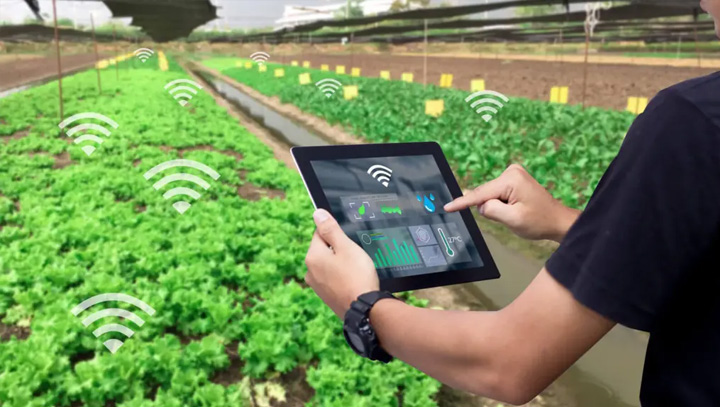 Các bộ cảm biến sẽ được thiết lập ngay trên các cánh đồng, khu chăn nuôi,… Kết hợp với công nghệ nhận dạng hình ảnh, nó giúp người nông dân theo tình trạng cây trồng, con giống mọi lúc mọi nơi. Đồng thời, hệ thống kết nối với các thiết bị có thể tự động tưới nước, cung cấp thêm dưỡng chất hoặc thông gió, thoáng khí trang trại theo sự điều khiển của con người.