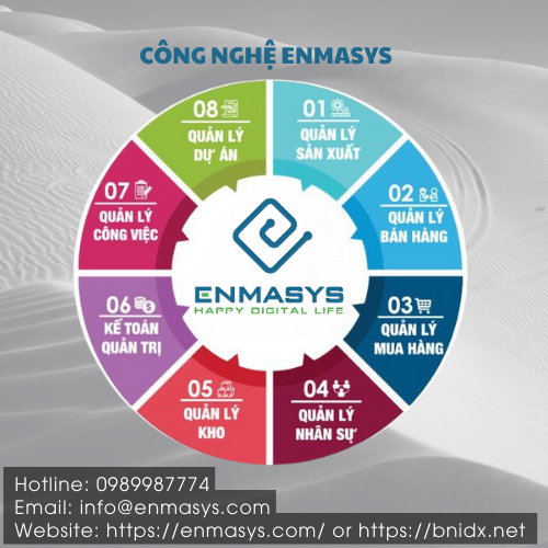 ENMASYS, với tư cách là một công nghệ ERP tiên tiến, bao gồm 8 phần hệ tích hợp mạch lạc, đảm bảo luồng thông tin và dữ liệu thống nhất. Hệ thống độc đáo này giúp lãnh đạo, quản lý và trưởng các phòng ban thực hiện công việc một cách hiệu quả thông qua một nền tảng phần mềm thống nhất. Điều này loại bỏ các công đoạn đầu nhập liệu, tìm kiếm và giảm thiểu sai sót trong quá trình trao đổi thông tin.