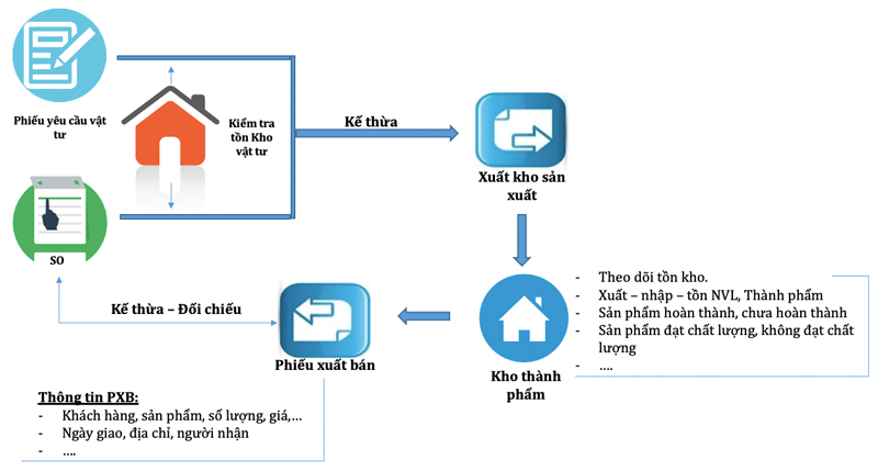- Dựa vào lệnh sản xuất để kho xuất vật tư.