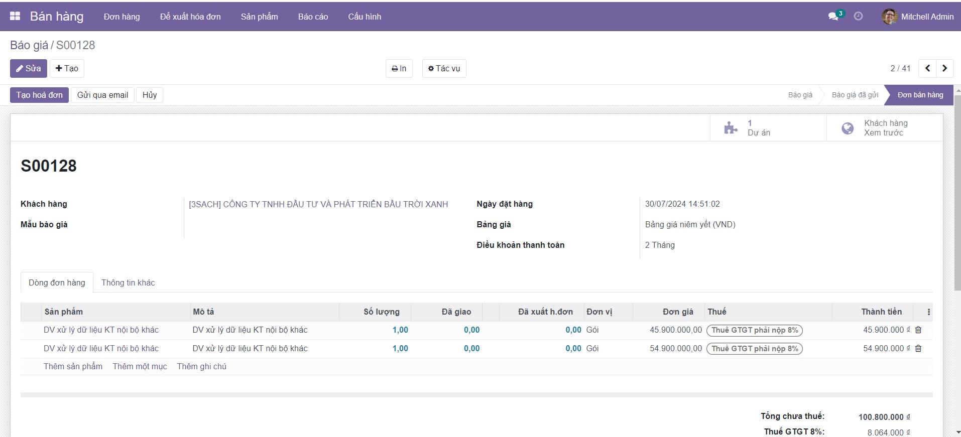 Một trong những chức năng quan trọng mà phần mềm mang lại là tự động hóa các bước trong quy trình bán hàng. Các bước như tạo báo giá, gửi hóa đơn, theo dõi thanh toán, và giao hàng đều có thể được tự động hóa, giúp giảm thiểu sai sót do con người và tiết kiệm thời gian. Điều này không chỉ cải thiện năng suất làm việc mà còn đảm bảo quy trình bán hàng diễn ra suôn sẻ và nhanh chóng.