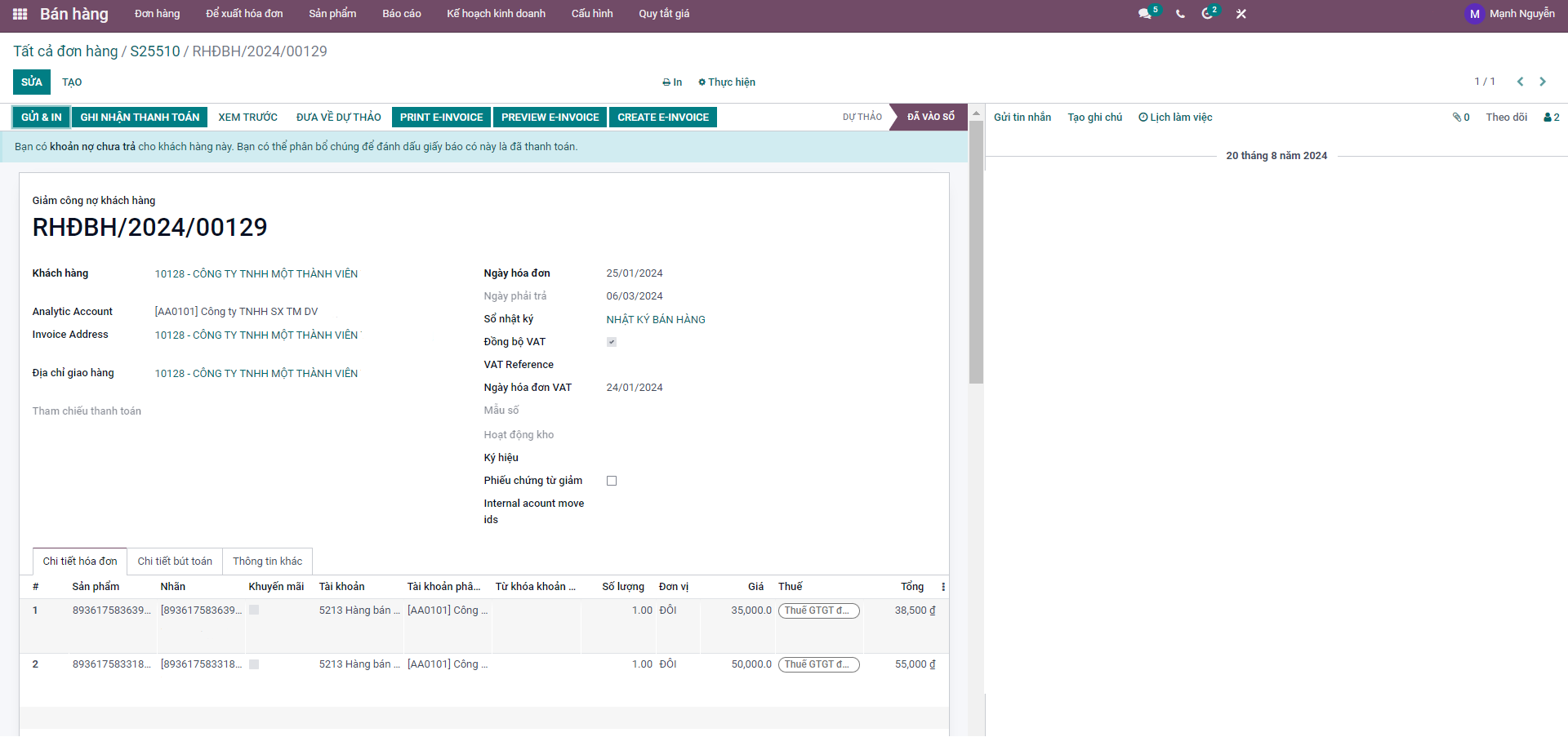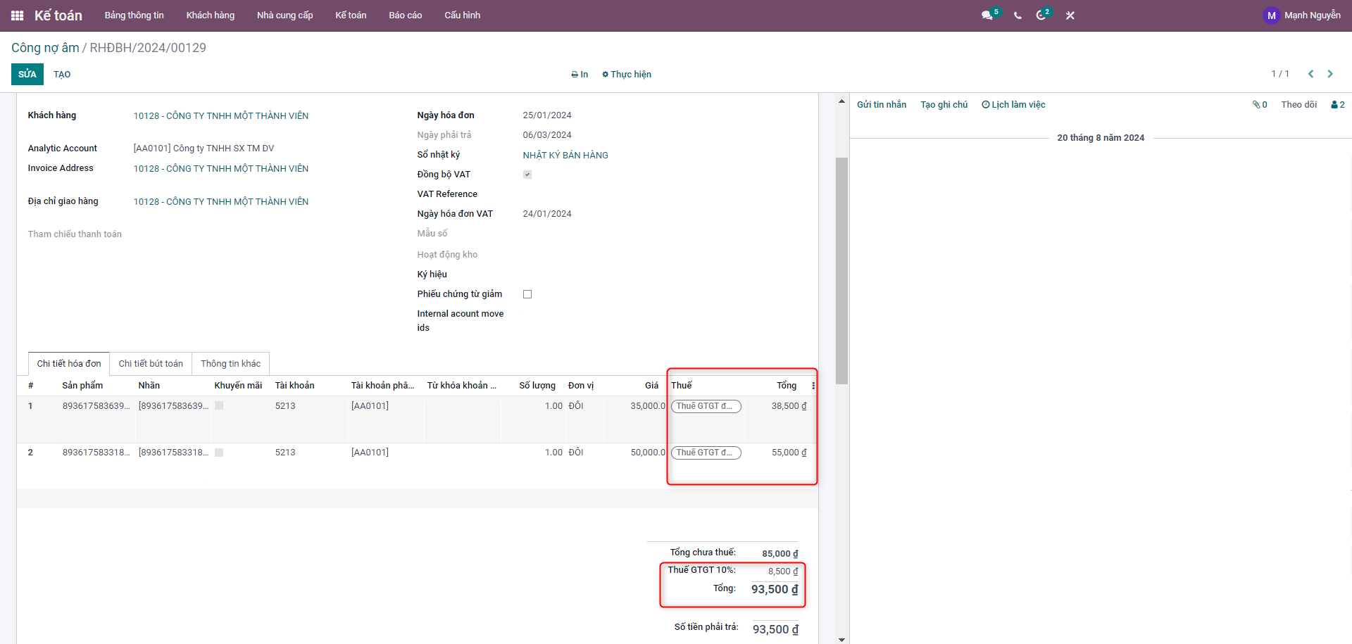 5. Tự động tính toán thuế và chiết khấu: Tự động hóa việc tính toán thuế VAT và các chính sách chiết khấu, giảm thiểu sai sót trong quá trình hạch toán.
