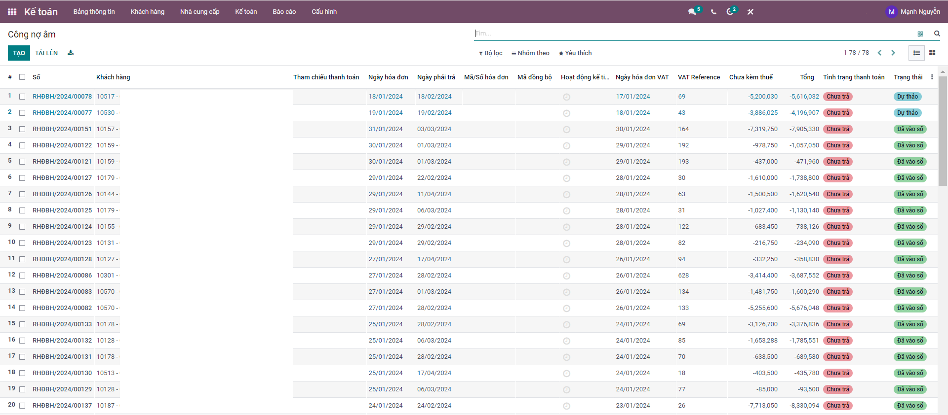 2. Quản lý công nợ khách hàng: Theo dõi công nợ của từng khách hàng, thông báo về hạn thanh toán và cập nhật trạng thái thanh toán trong thời gian thực.