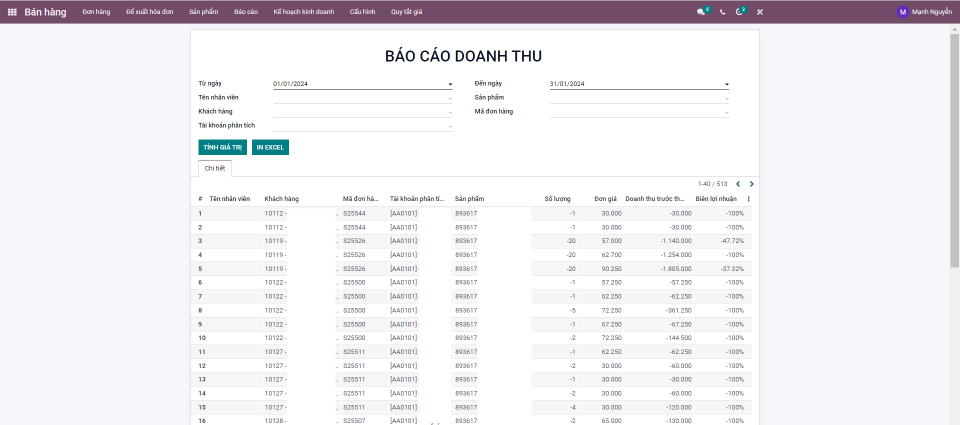 4. Báo cáo bán hàng chi tiết: Hệ thống cung cấp các báo cáo bán hàng chi tiết theo thời gian, mặt hàng, khách hàng, và khu vực giúp doanh nghiệp có cái nhìn tổng quan về hiệu suất bán hàng.