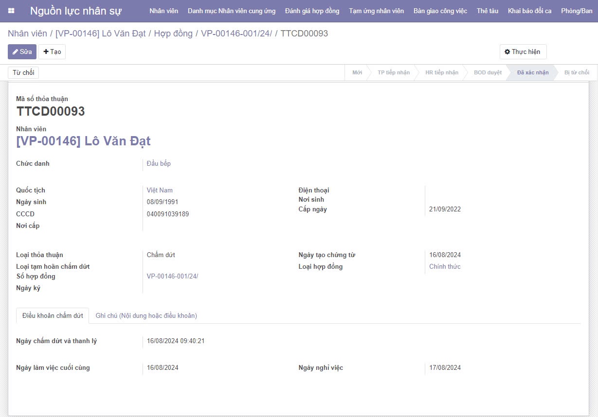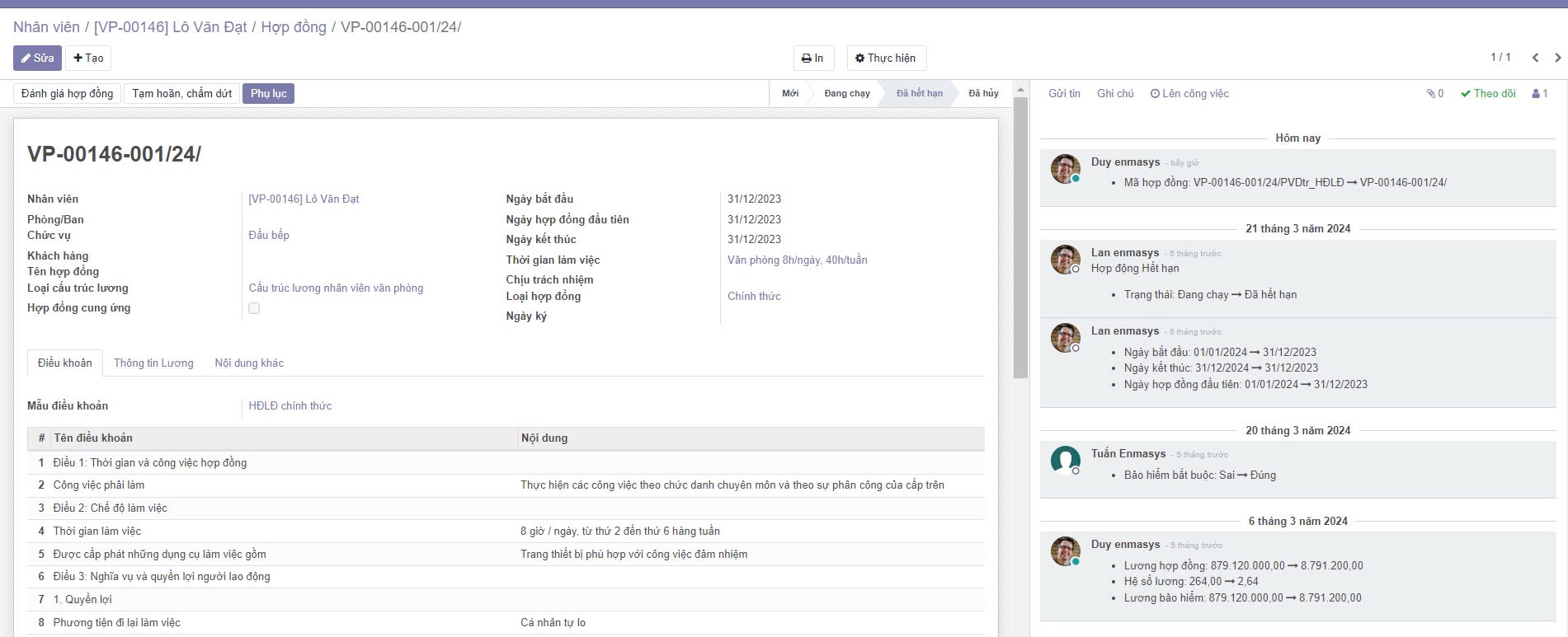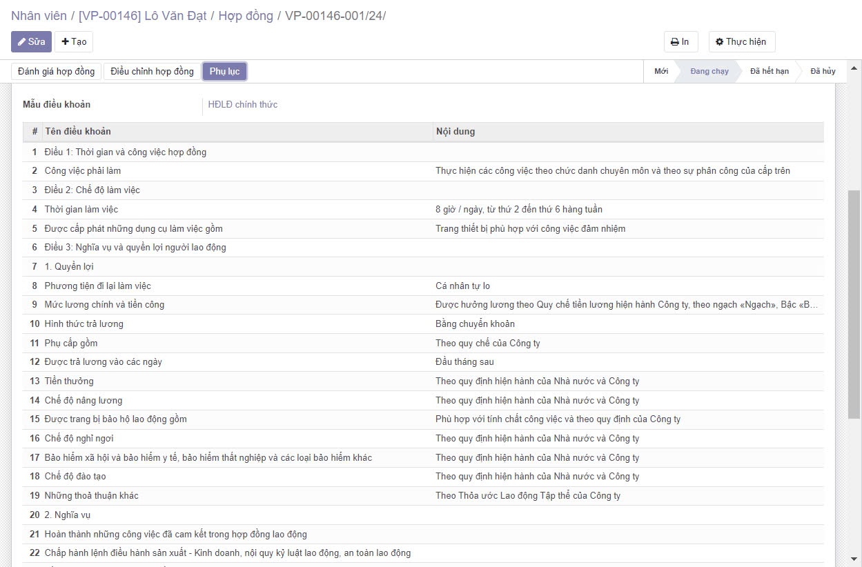 2. Quản lý hợp đồng lao động: Tạo mới, sửa đổi, gia hạn, và chấm dứt hợp đồng lao động một cách tự động và theo dõi các điều khoản chi tiết của từng hợp đồng.