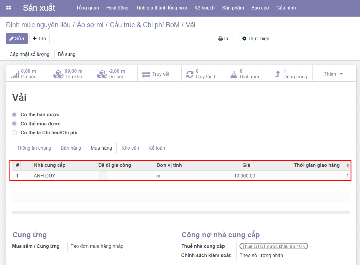 - Quản lý và theo dõi nguồn cung cấp nguyên vật liệu hiệu quả: Đảm bảo nguồn cung cấp nguyên vật liệu ổn định và liên tục.